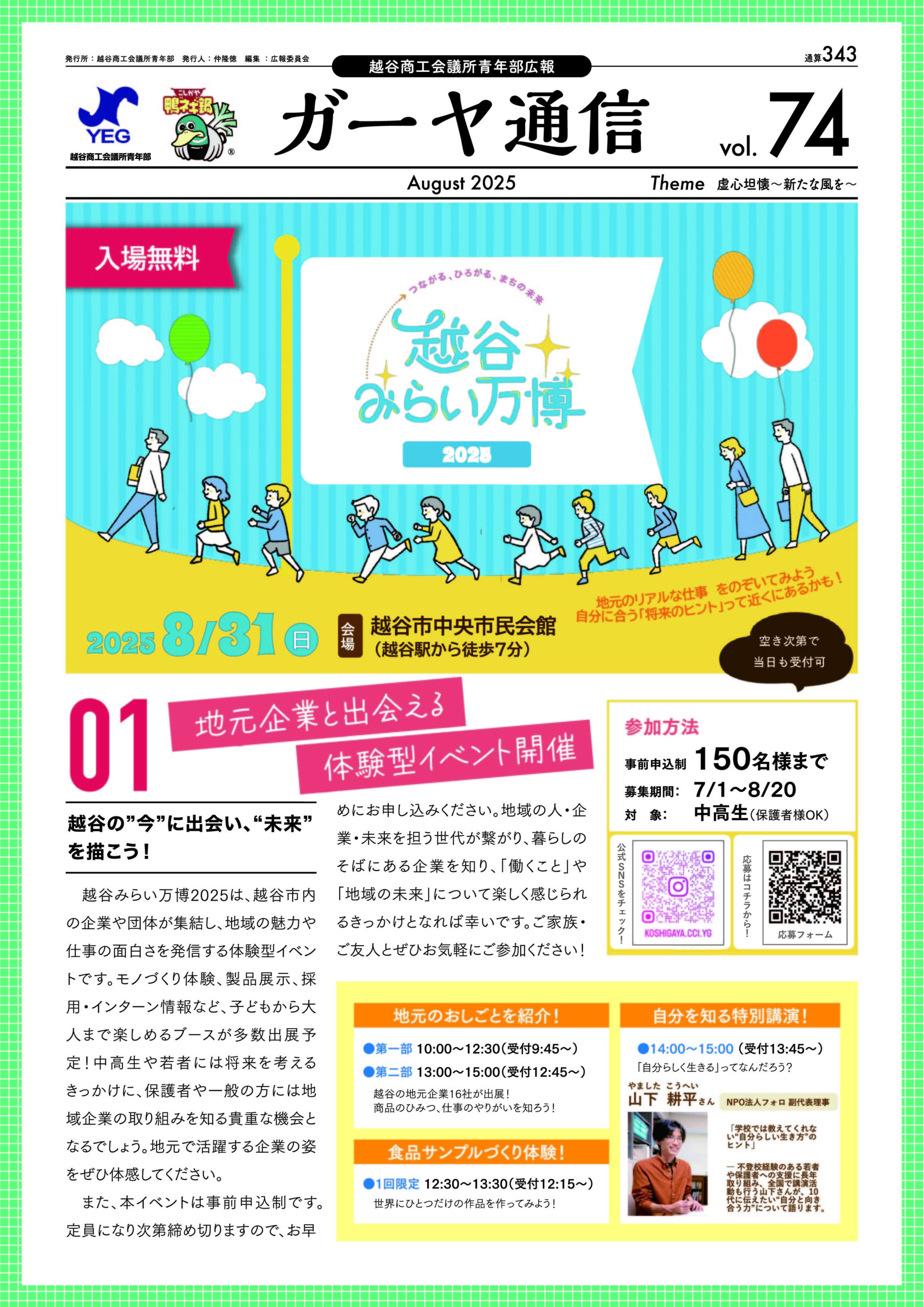 越谷商工会議所の会員またはその後継者であって、年齢18歳から45歳の方、様々な業穏の仲間と共に地域のために活動しませんか?